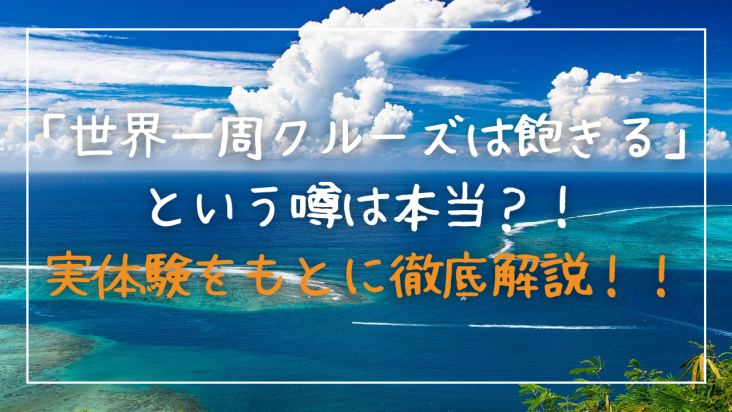 こんにちは、Ryotaです。このブログでは、世界一周旅行のノウハウを解説しています。社会人になる前に世界一周旅行に行きたいです。とはいえ、お金がありません。格安で行ける世界一周旅行の方法を教えてください。以上のような、世界一周クルーズについ...