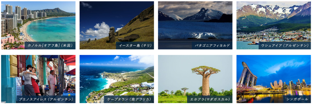 それでは早速、世界一周クルーズのモデルケースをご紹介していきます。