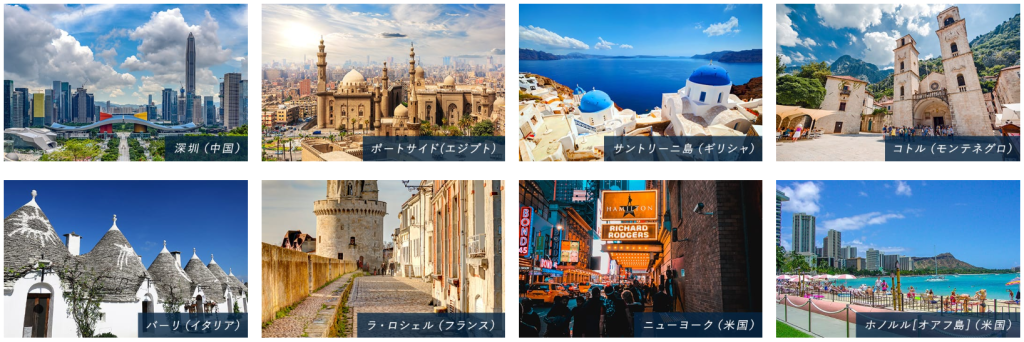 古代遺跡が残るエジプトや青と白の絶景を眺めるサントリーニ島など、旅行人気が高いスポットを回る世界一周旅行です。